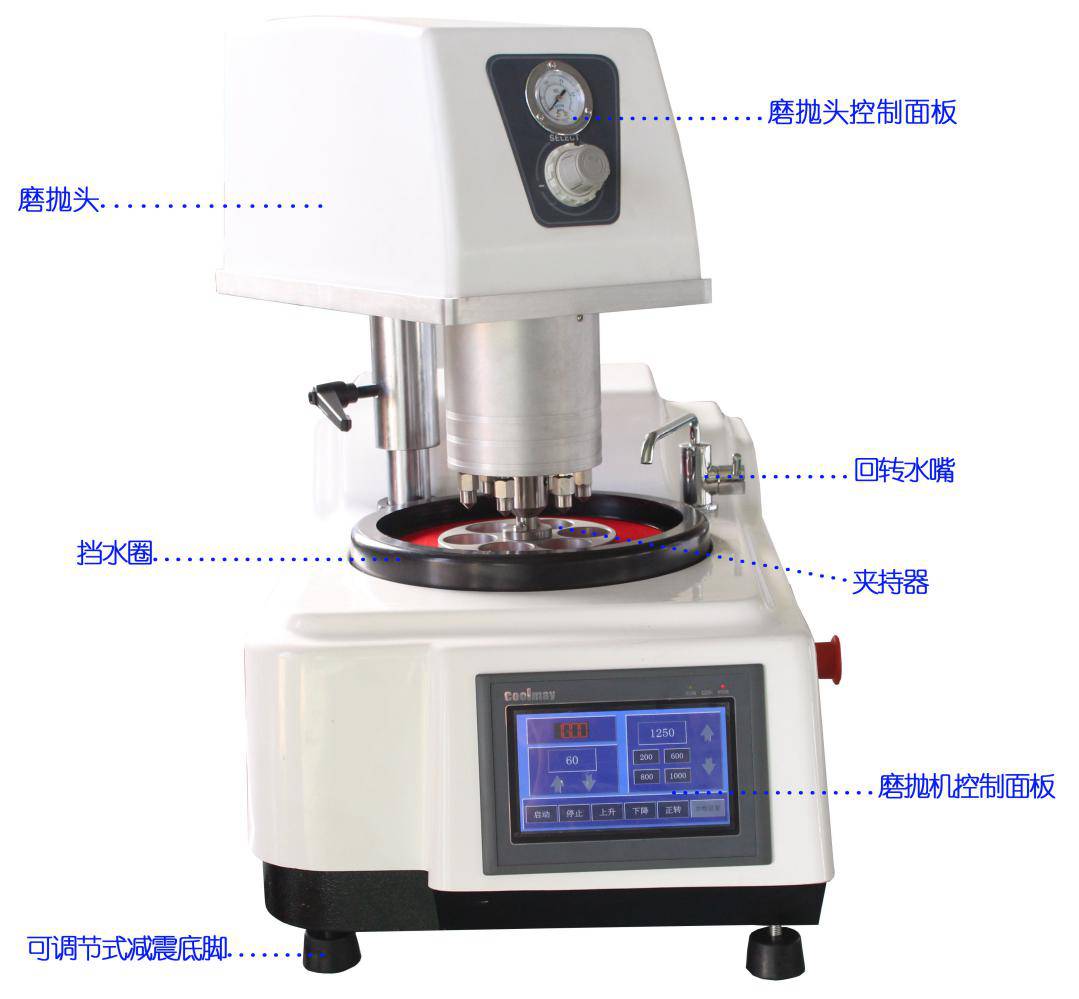 触摸屏显示操作,采用了先进的微处理器控制系统,使得磨抛盘、磨抛头的转速实现无级调速,制样压力、时间设定直观、便捷,整机启动,停止控制。